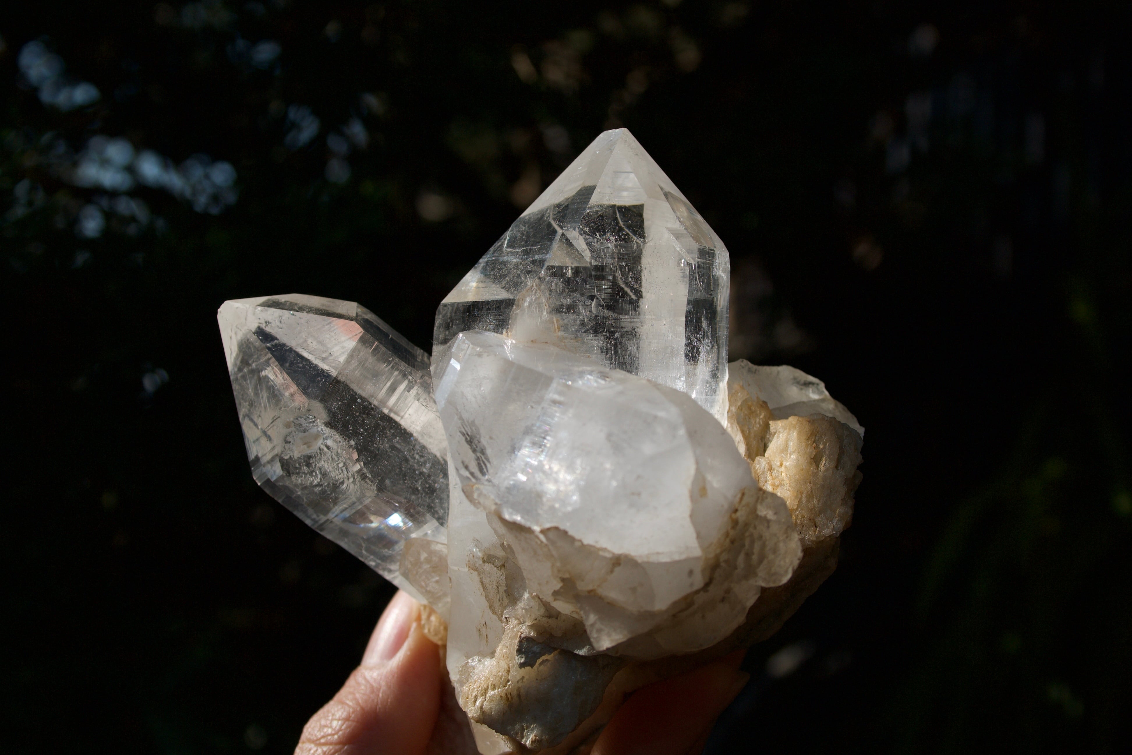 結晶部分は大中小4本のポイントが合わさっており、向きや角度によって様々な姿を見せてくれる水晶です。
