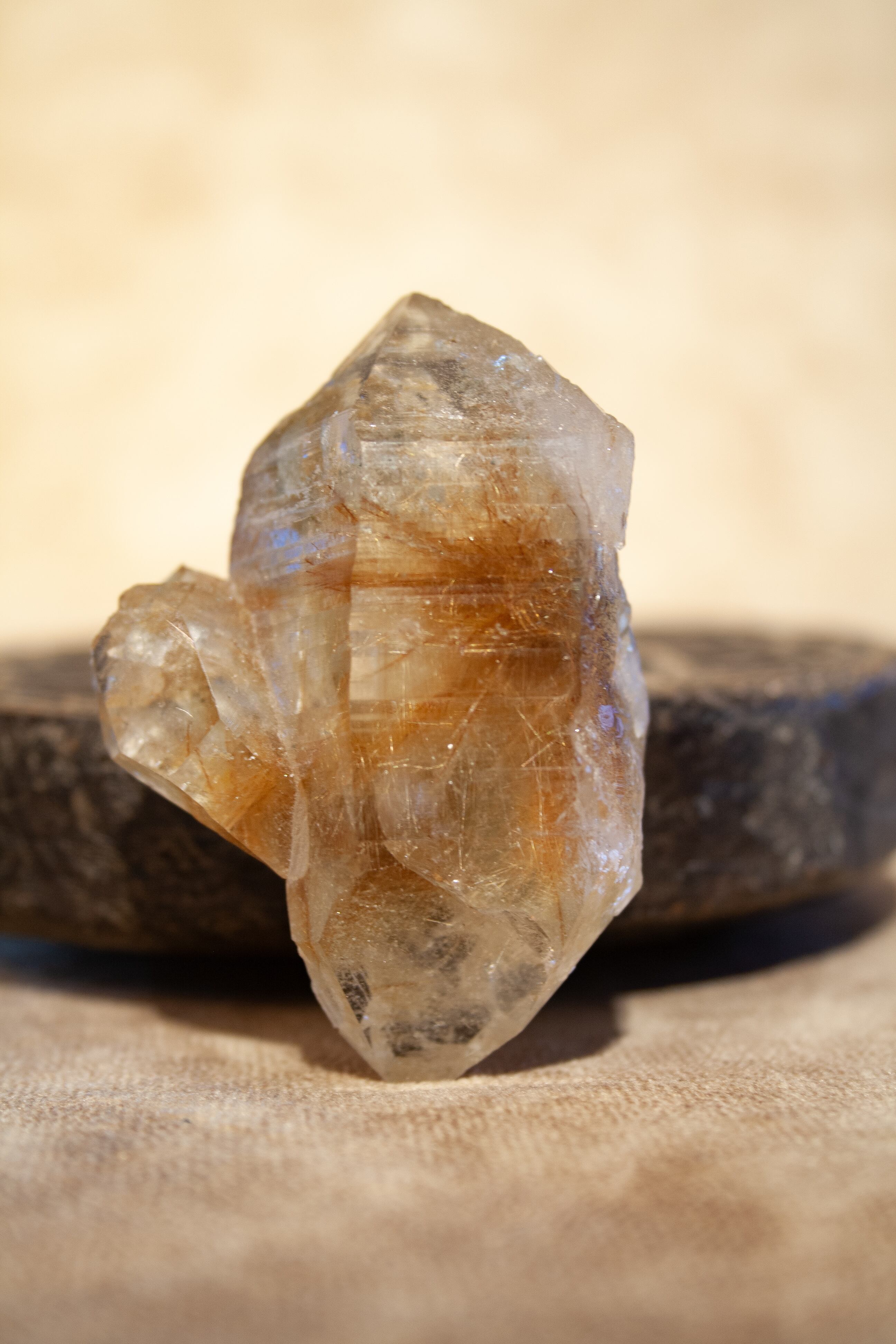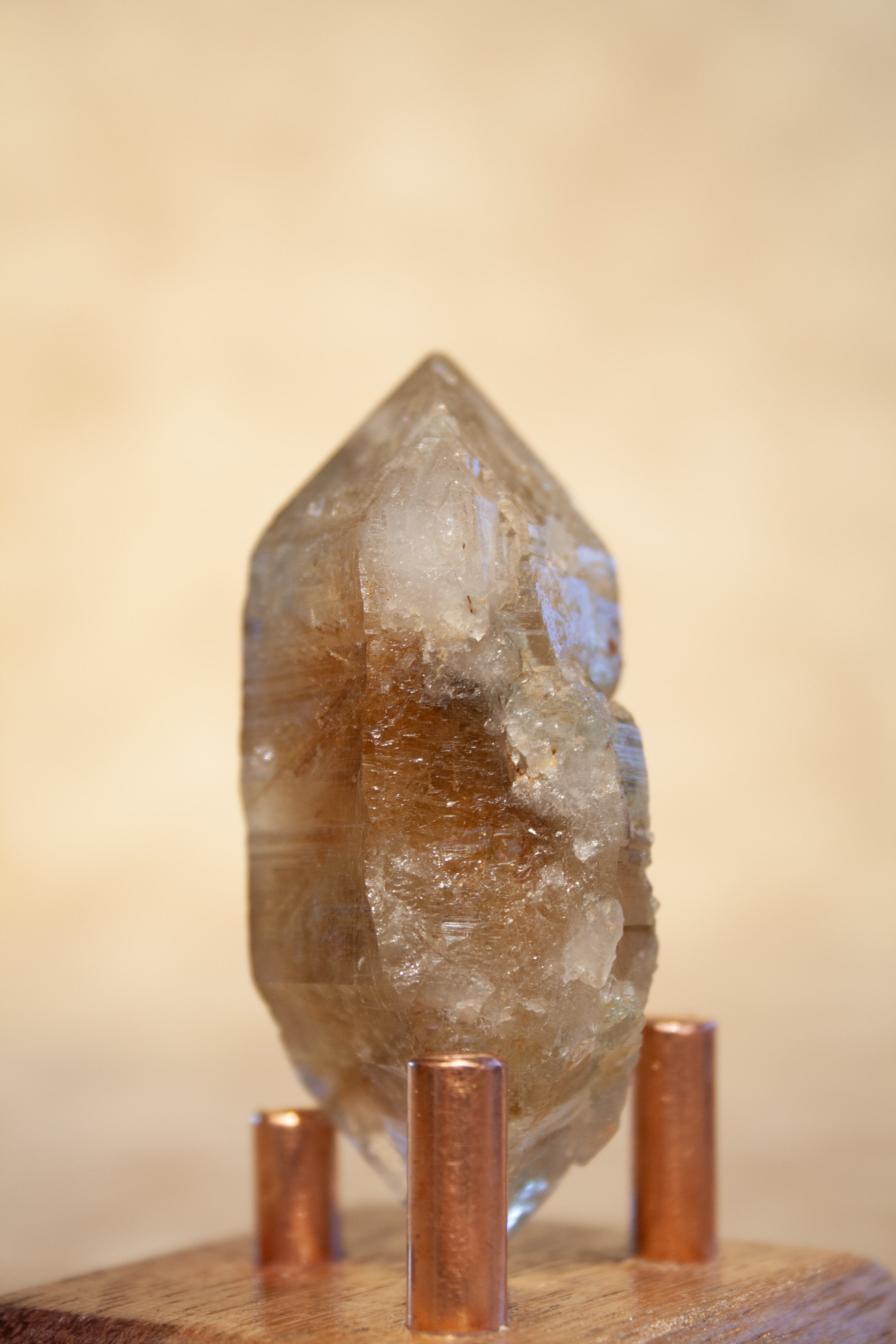 ブリハスパティ産特有の淡い黄金色の輝きをしている水晶で、
