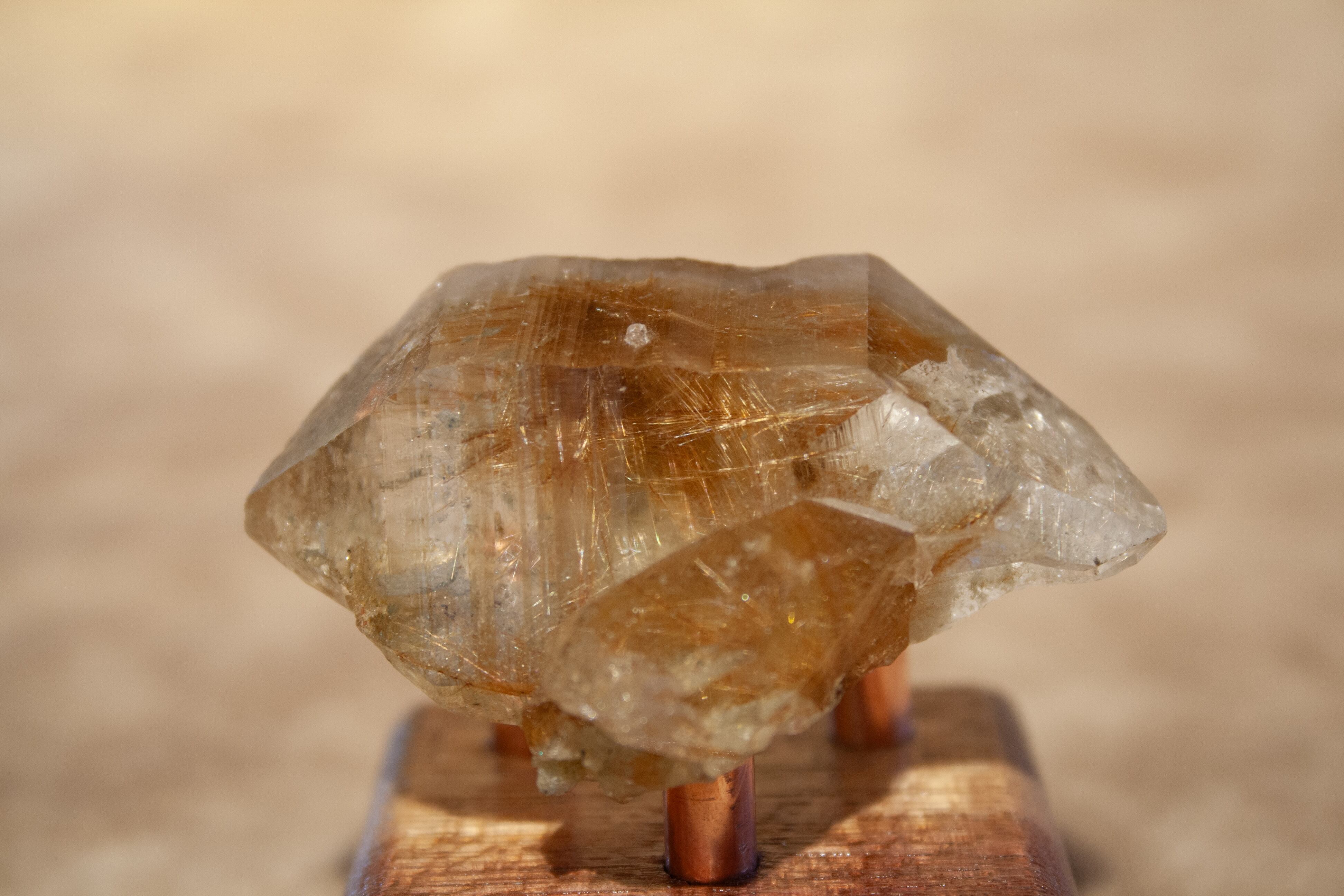 水晶をゆっくりと動かしながら眺めると、無数のルチルがキラキラと煌めき、とても美しい世界が垣間見れます。