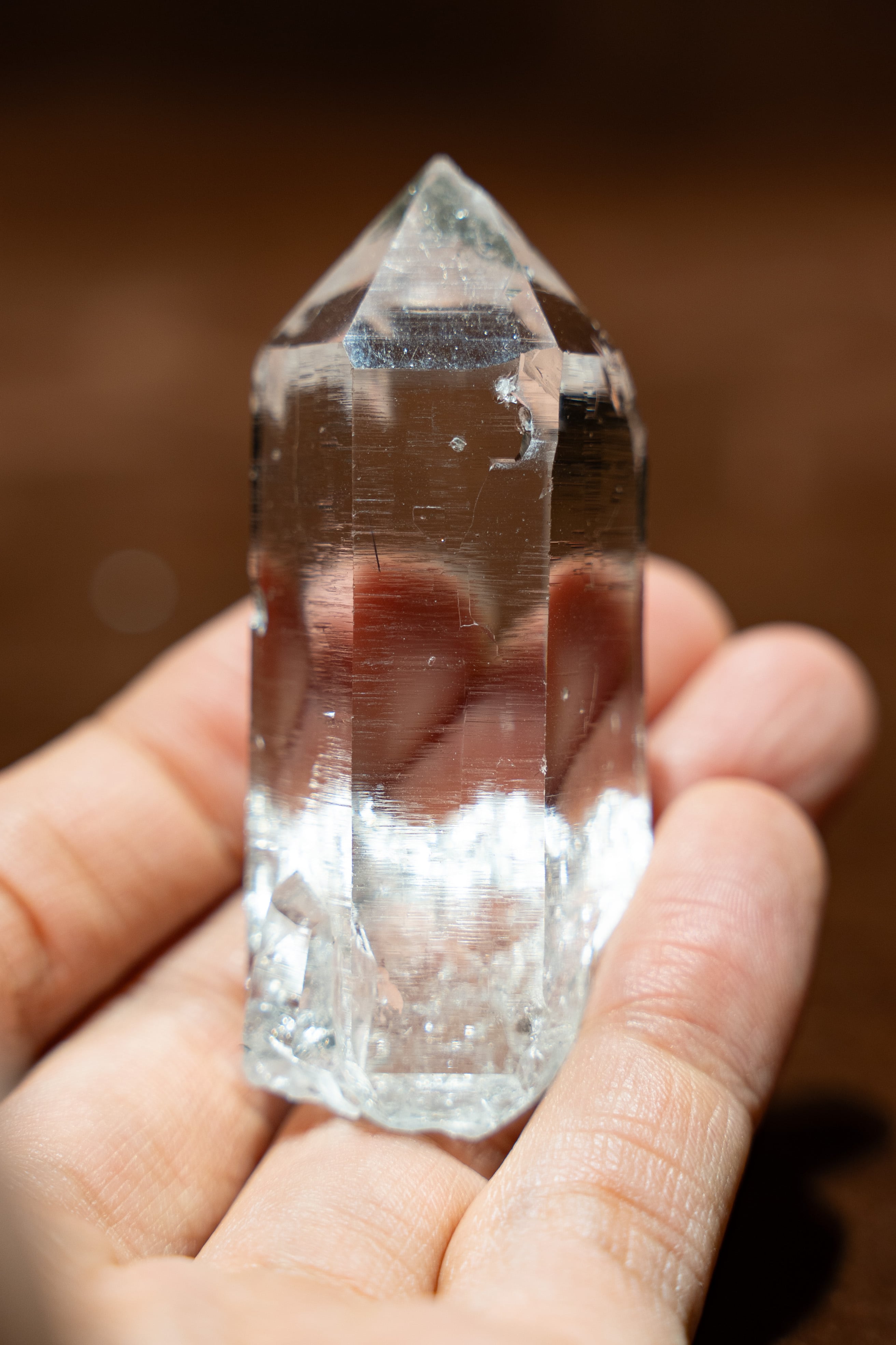 内包物はなく、天然のクラックが僅かに入っているのみで、無垢な輝きを放つ水晶です。