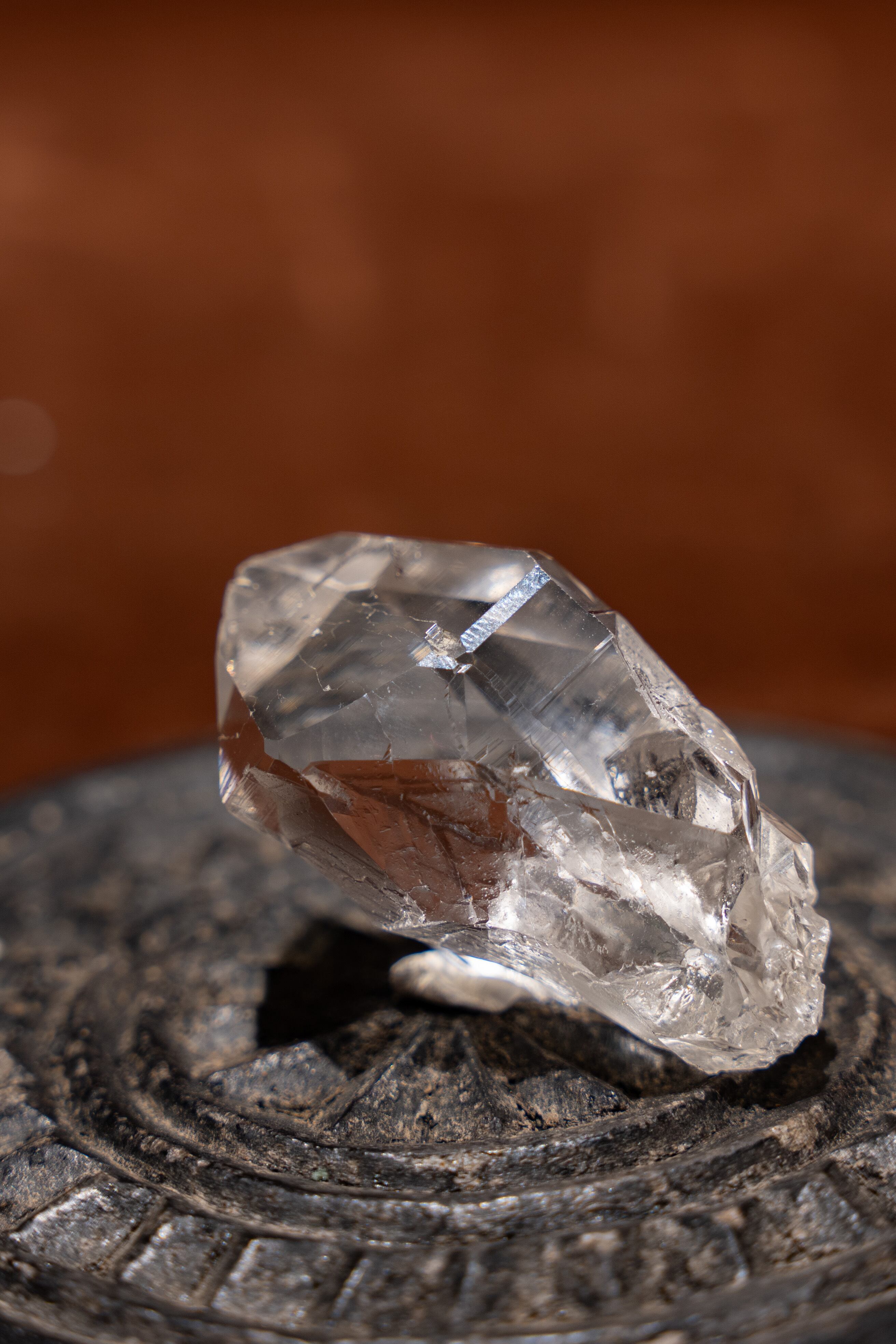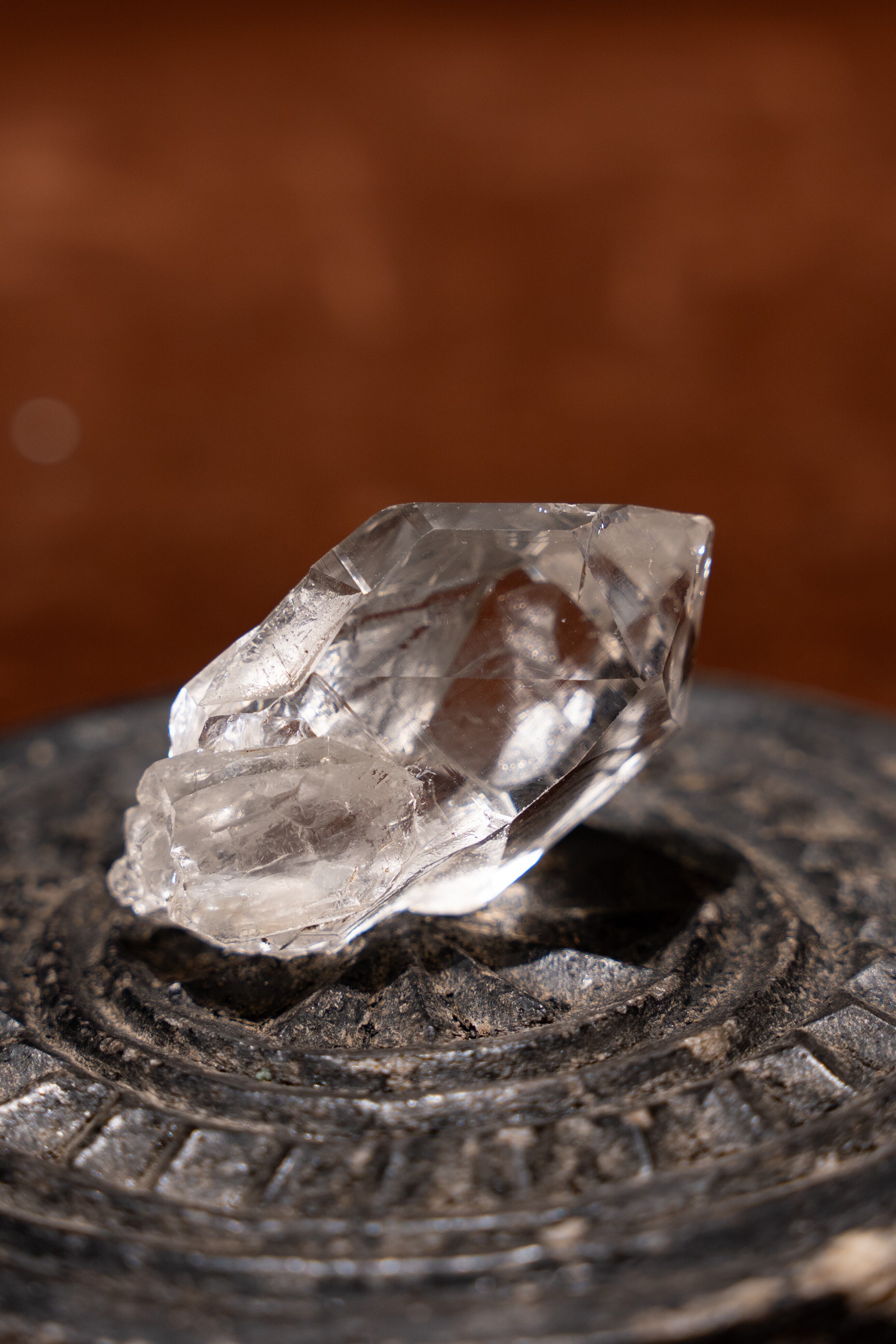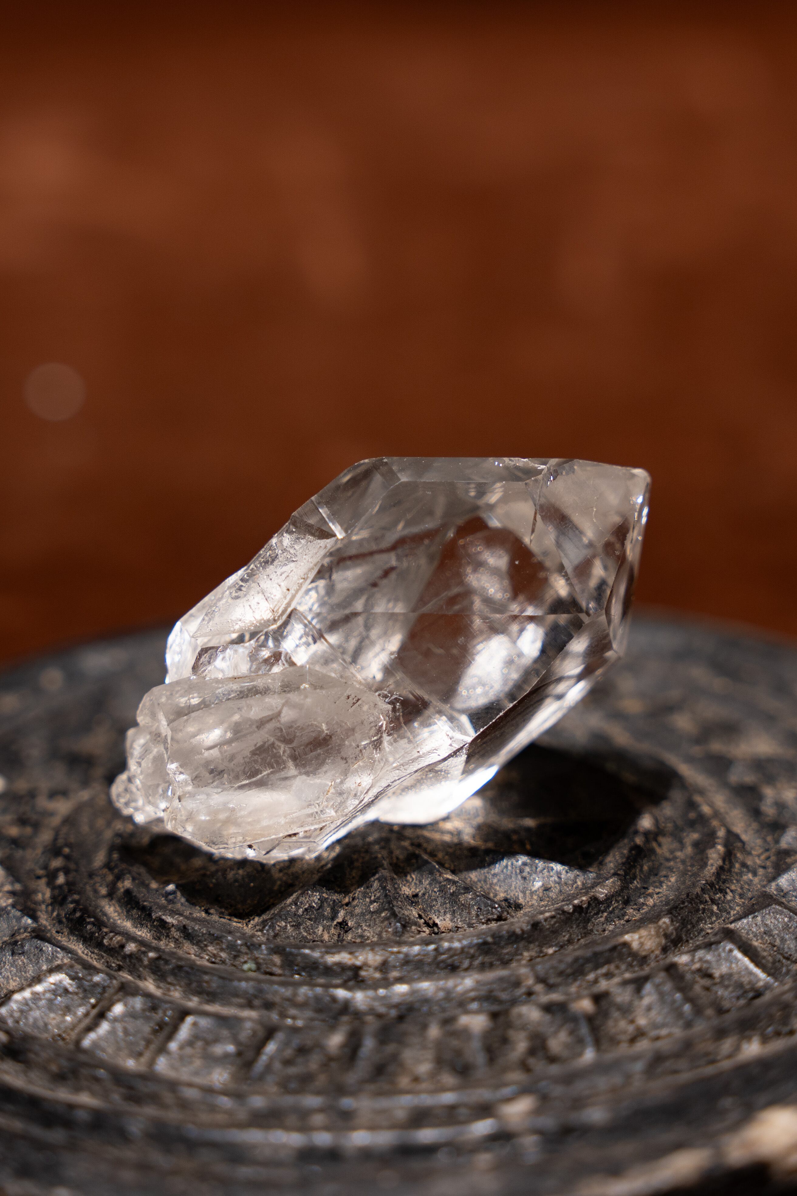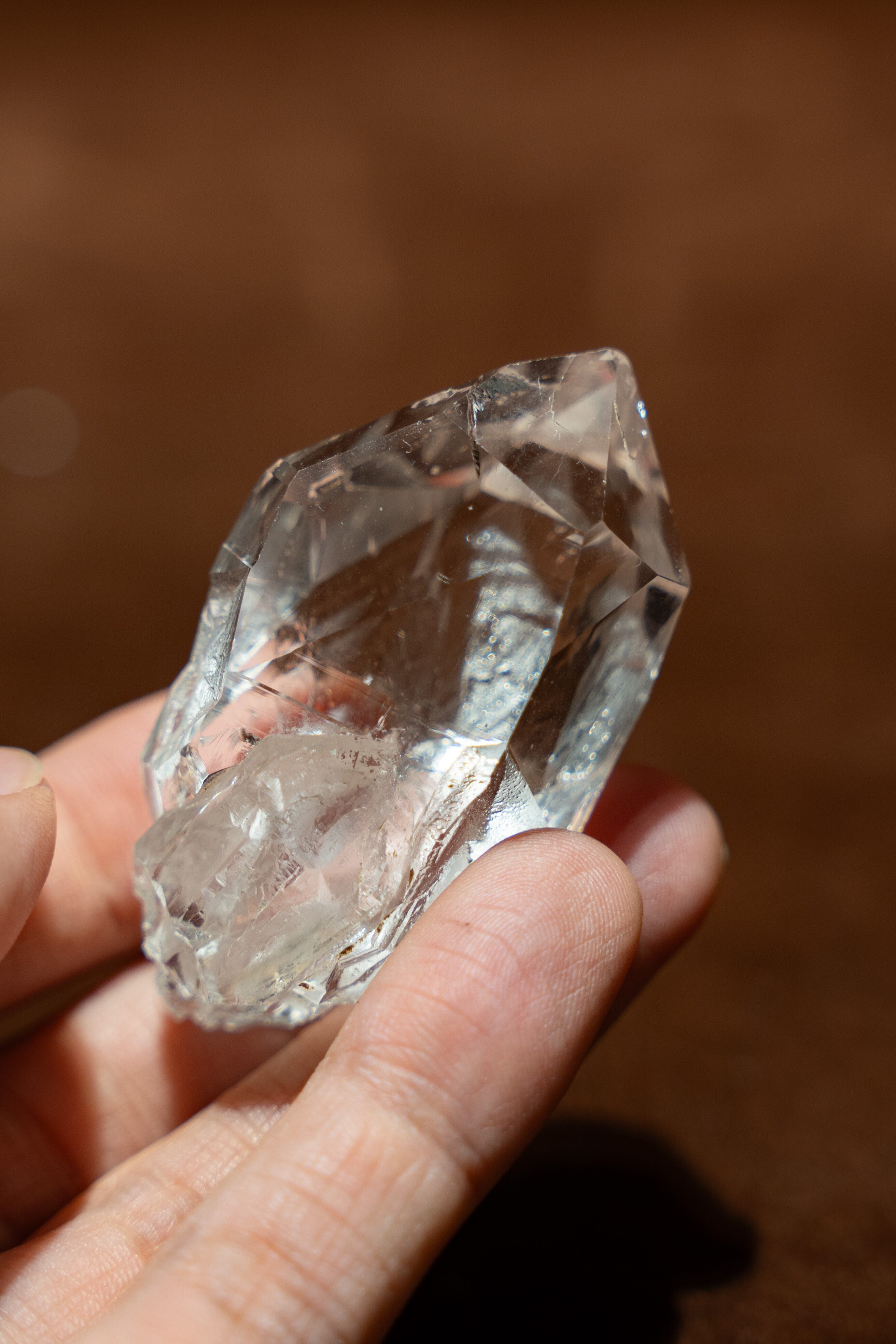 マニハール産特有の極上の透明感と照りを持ち、ユニークな結晶構造をしている水晶です。
