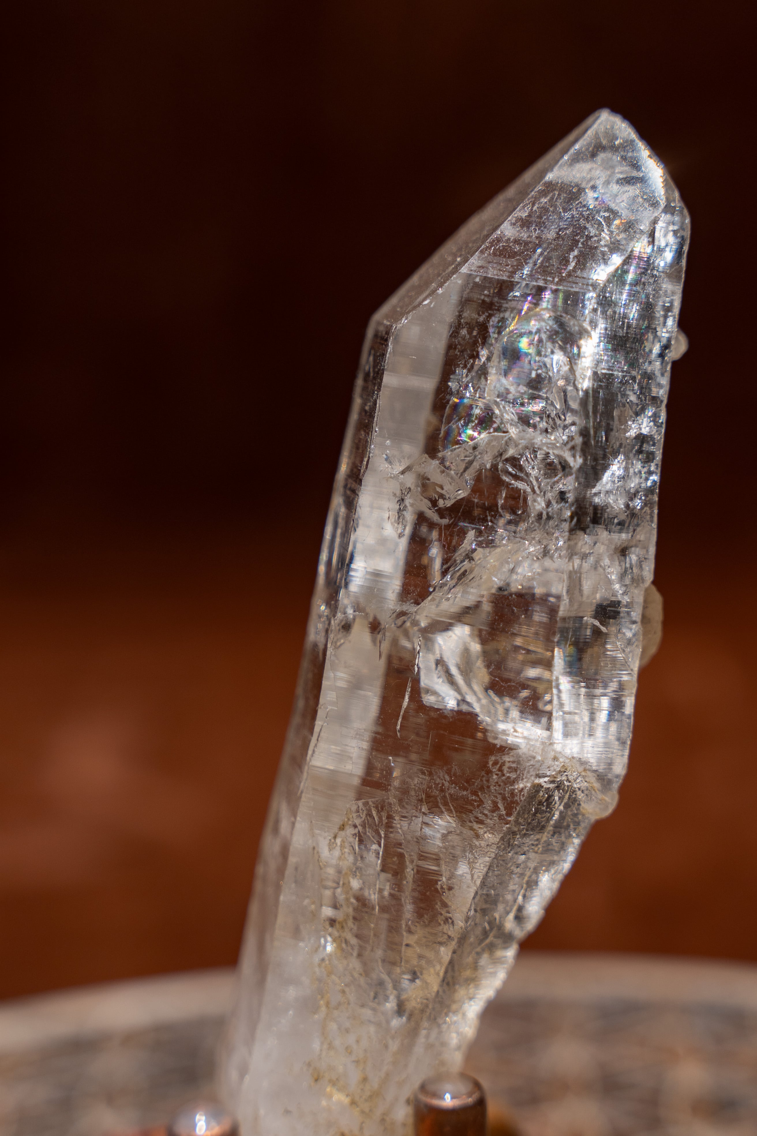 そして2つの柱面には小さなポイントが無数に貫入しており、バーナクルと言われる形状となっています。バーナクルは、持ち主に心の安定をもたらし、精神的な成長を促すと言われています。