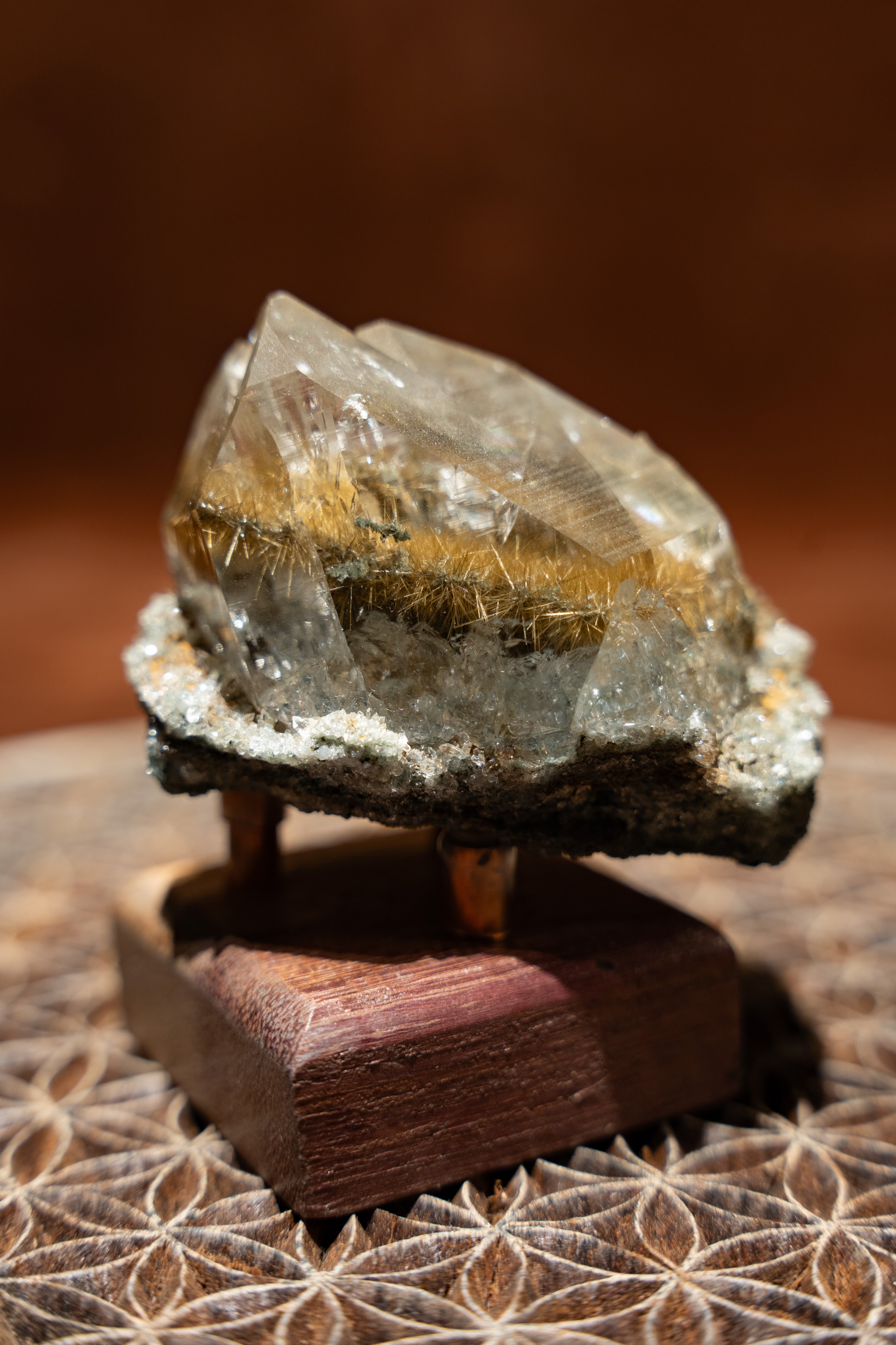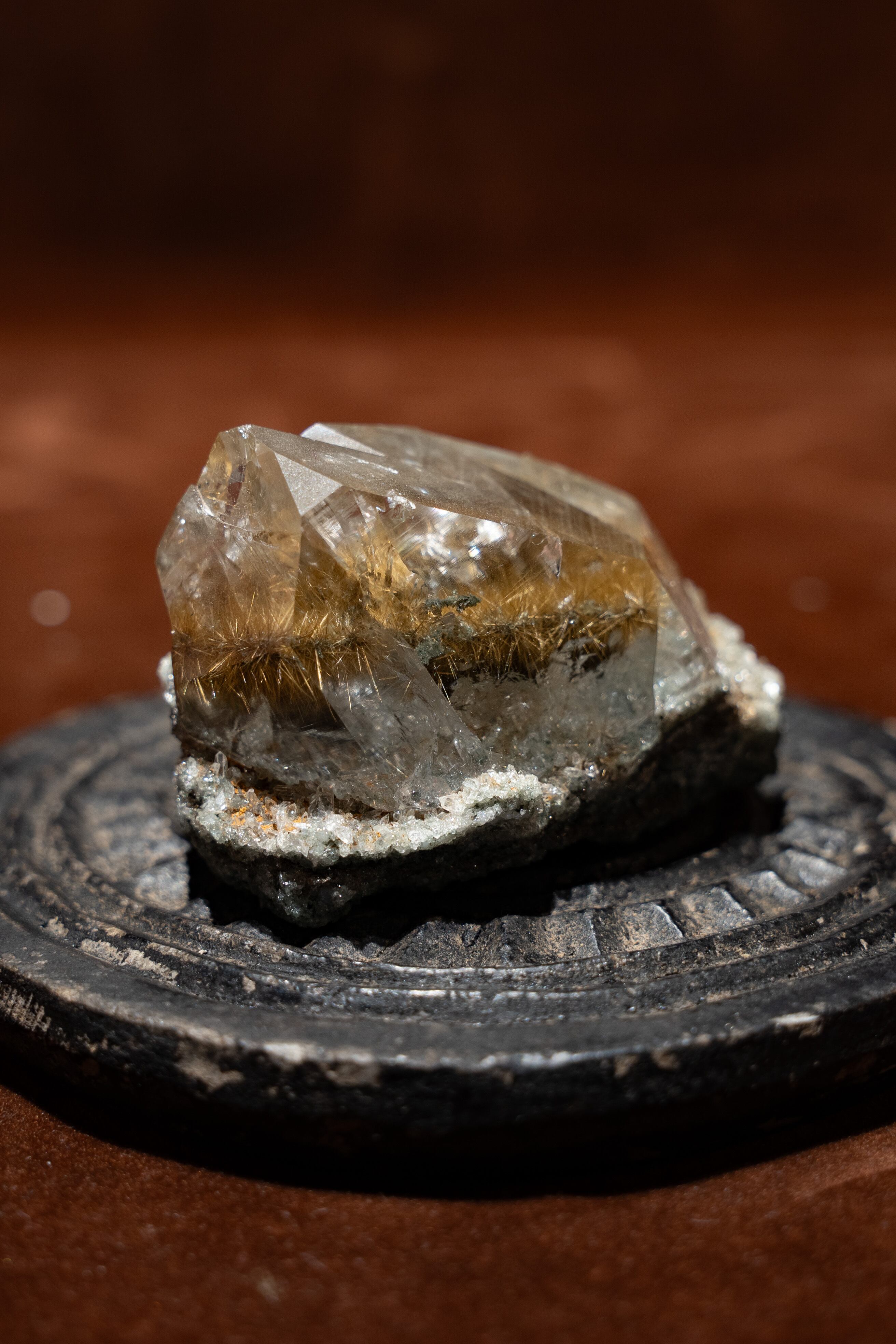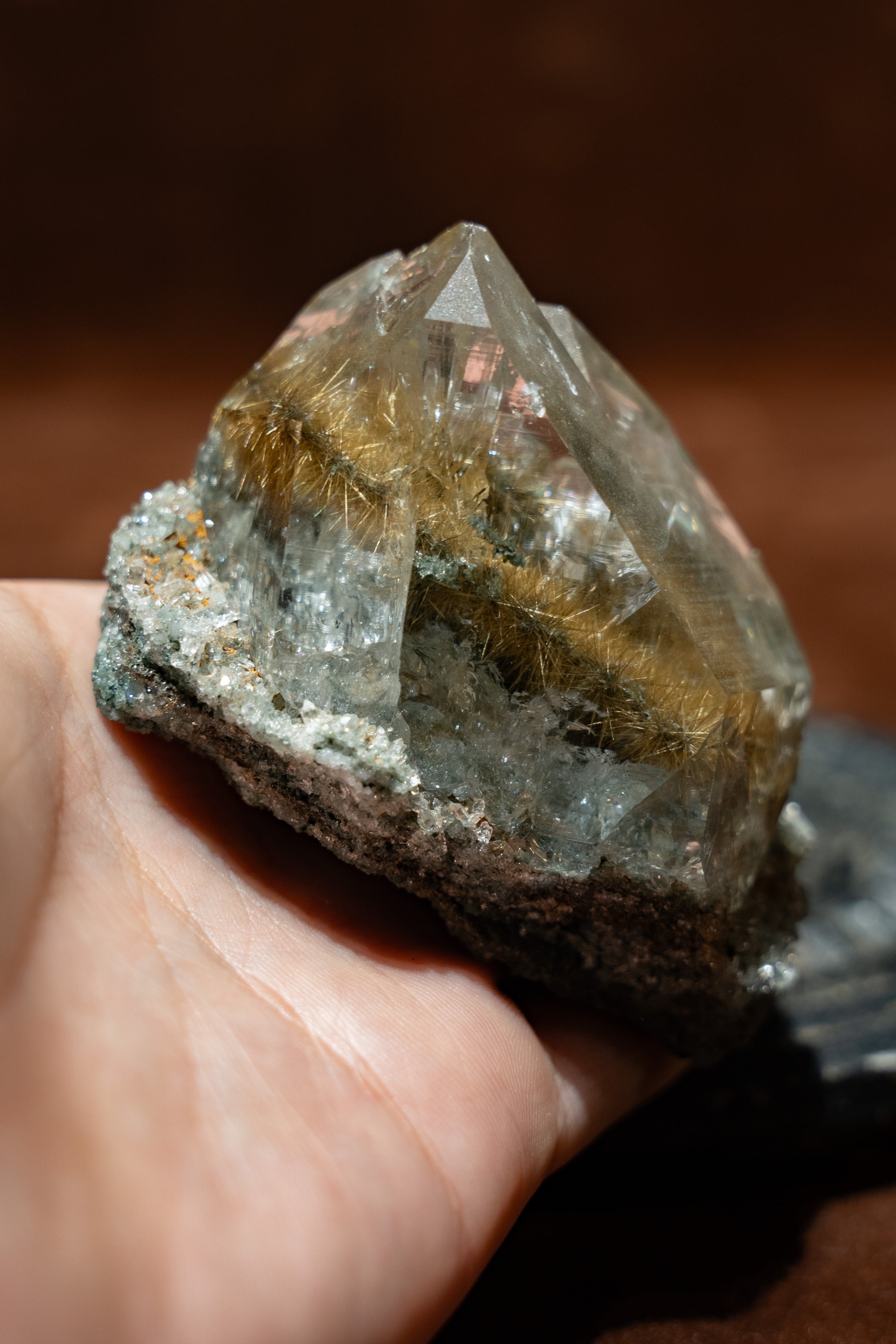 光に当てると、そのルチルが優しく煌めき、見ていて飽きる事がありません。