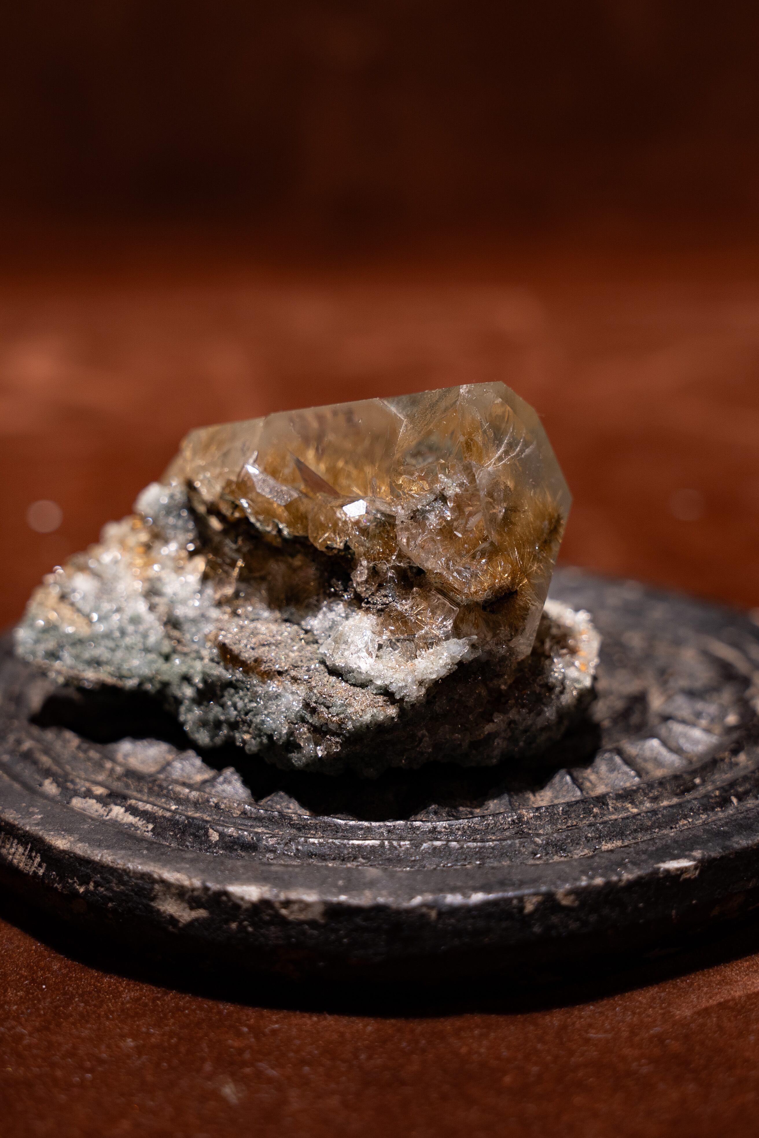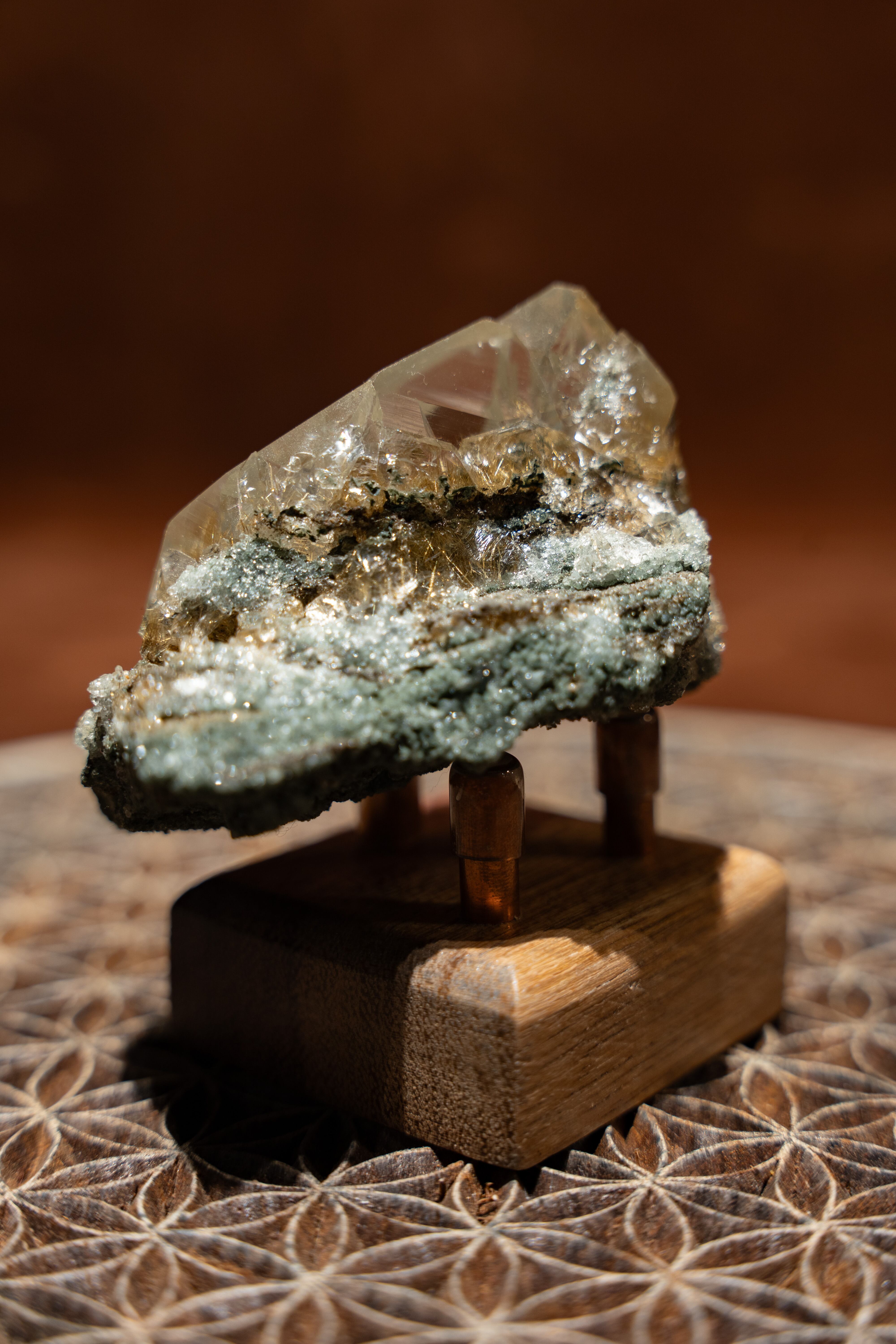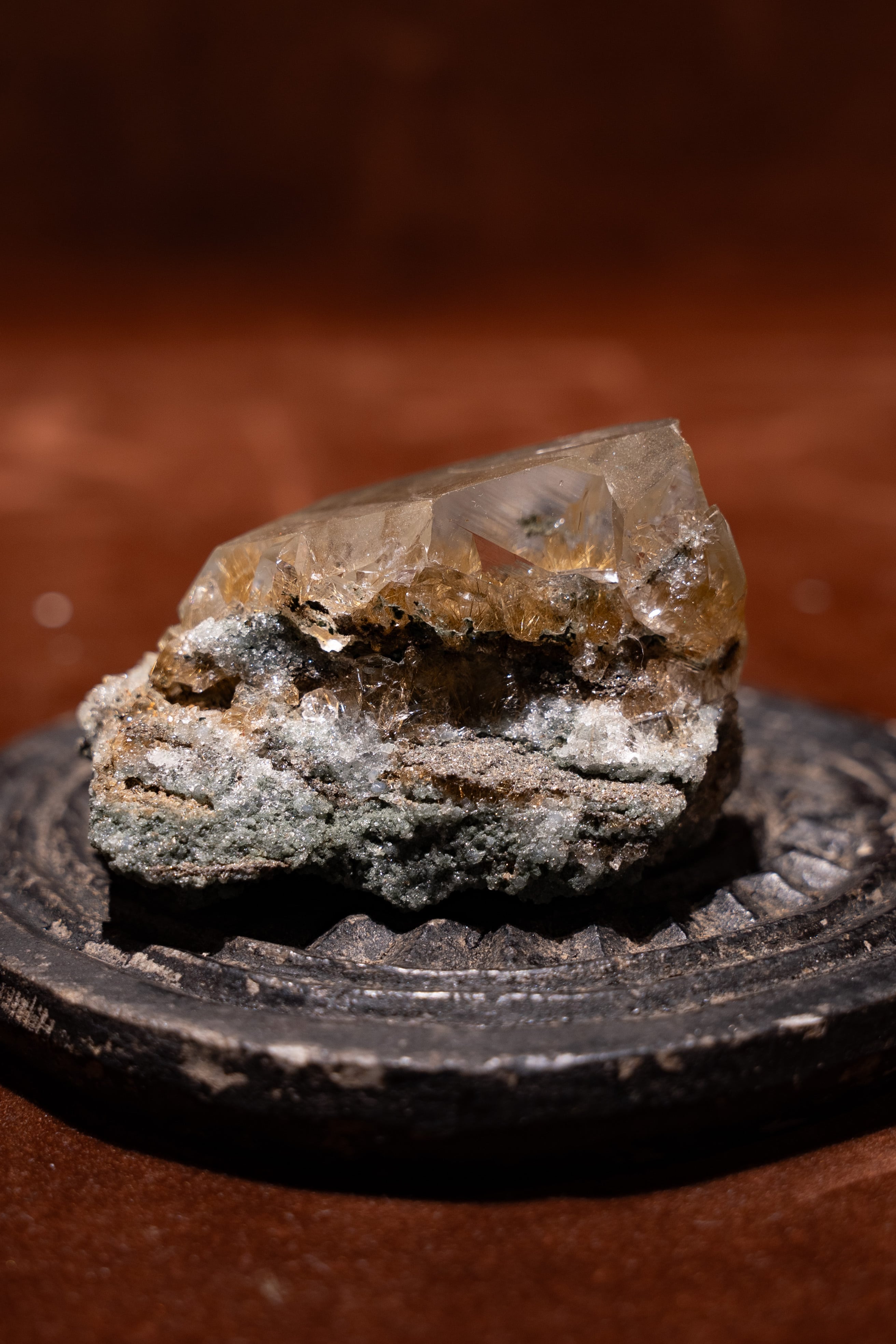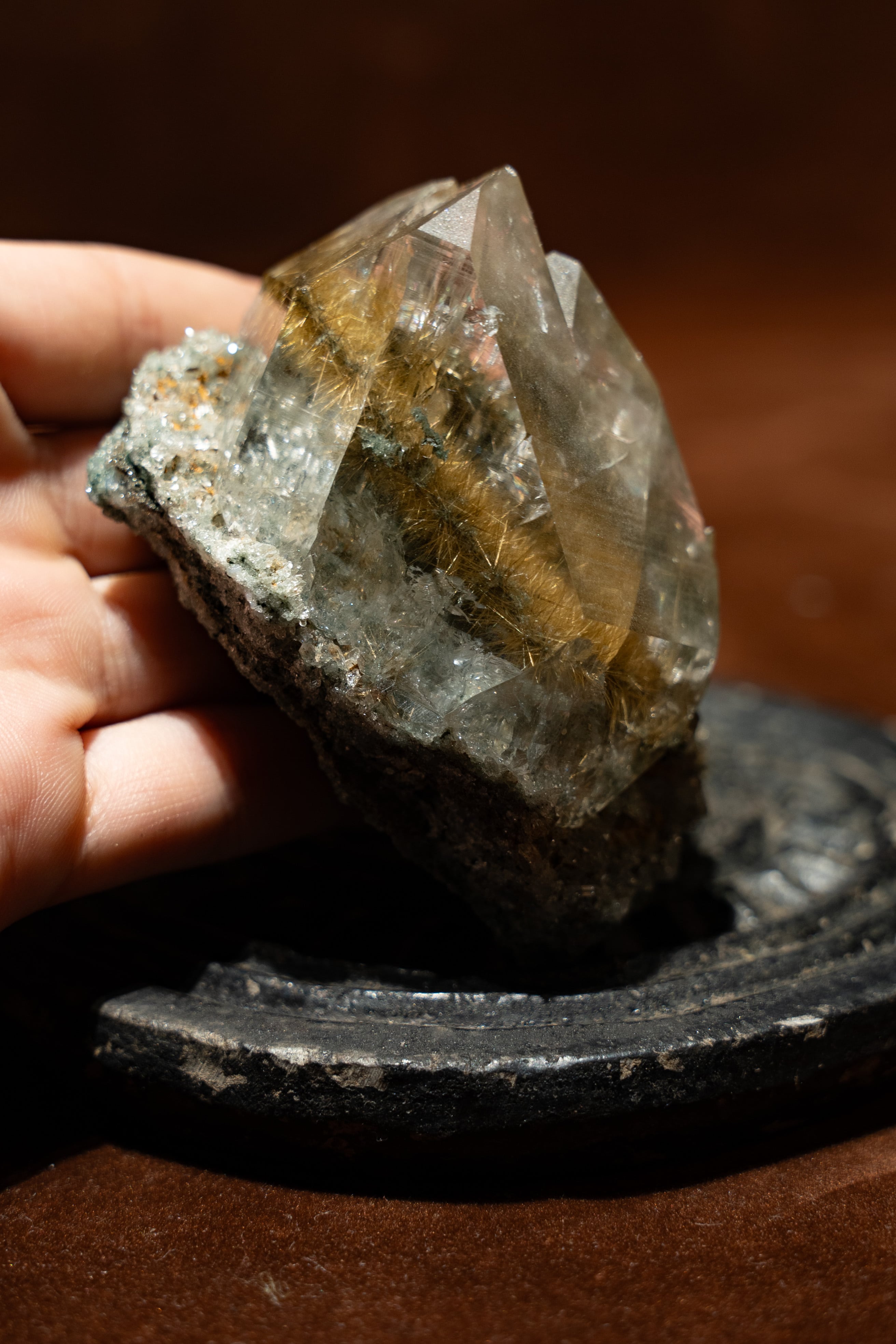 光に当てると、そのルチルが優しく煌めき、見ていて飽きる事がありません。
