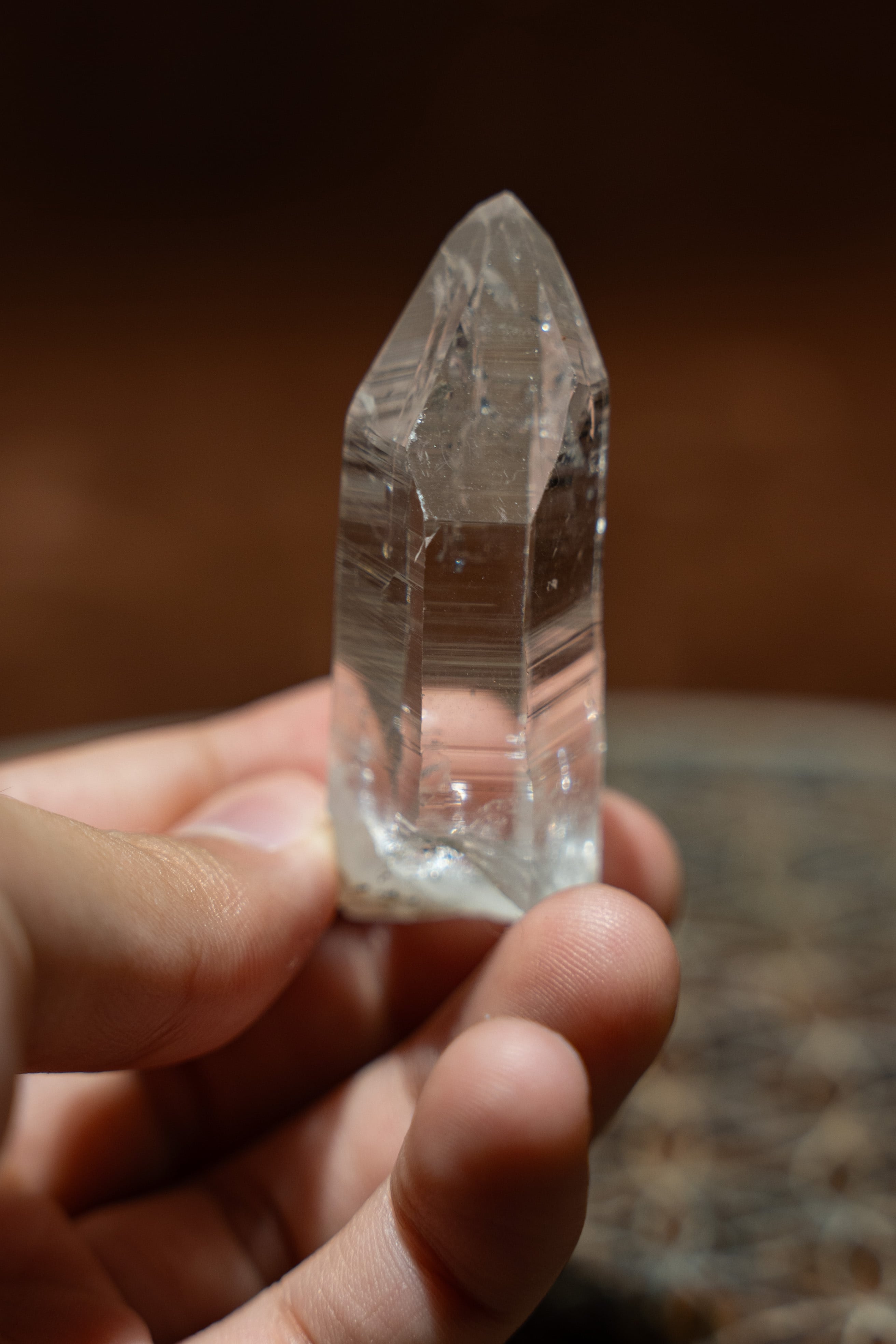 先端の欠けはとても少なく、美しい輝きを放つ水晶です。