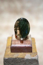 深緑色のクローライトファントムを内包したマニハール産のヒマラヤ水晶を、