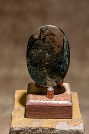 深緑色のクローライトファントムを内包したマニハール産のヒマラヤ水晶を、