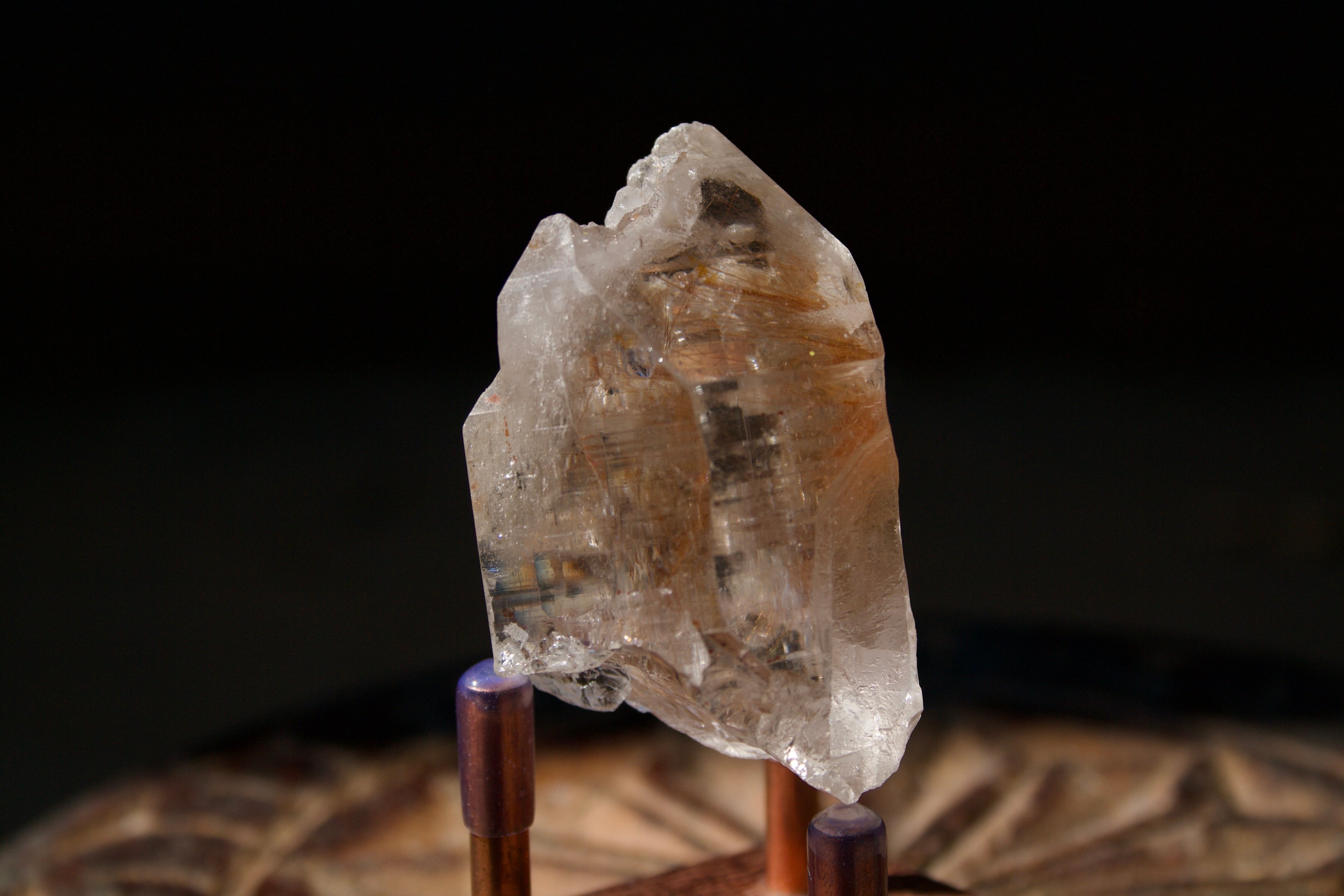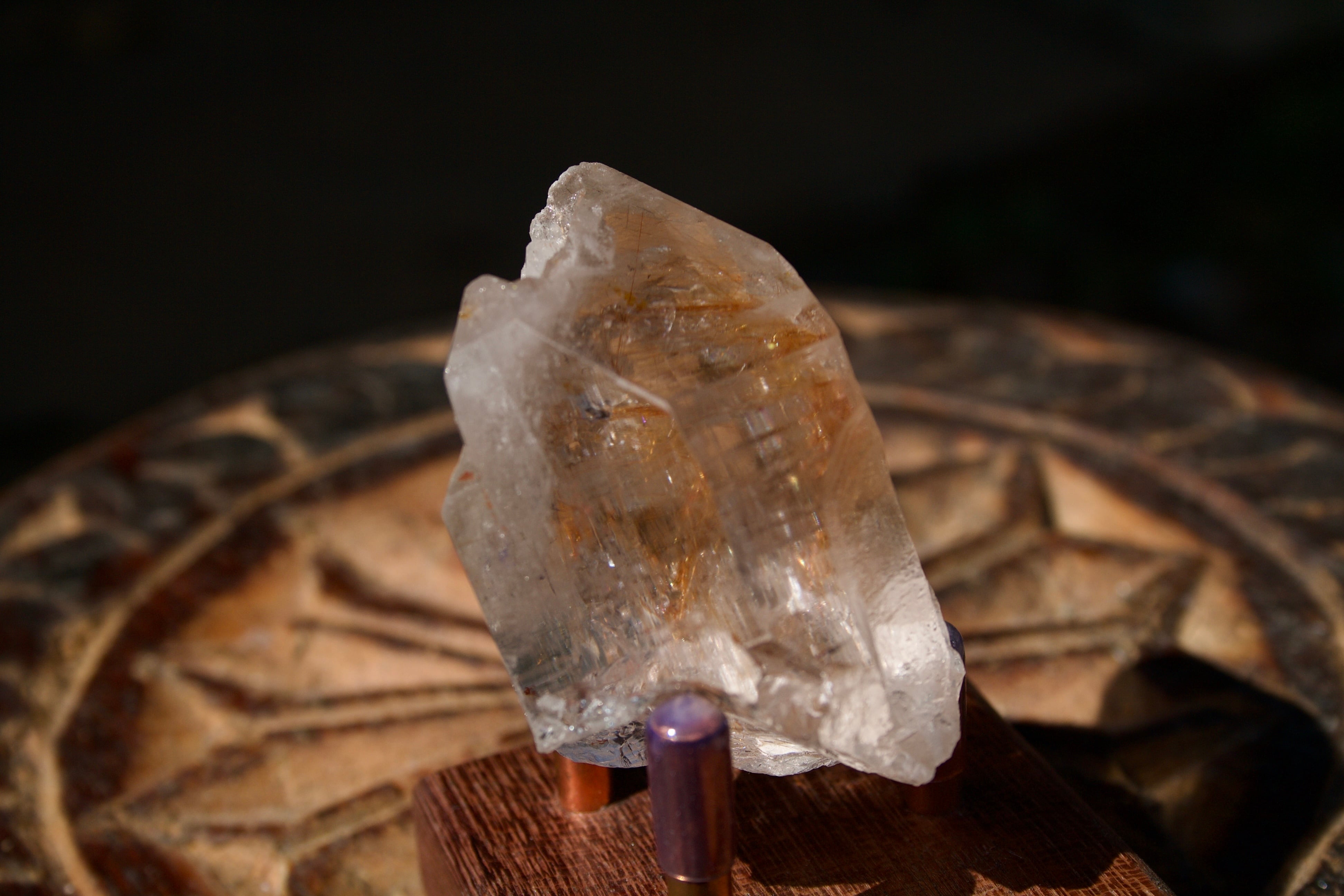 その中でも銅色に輝くルチルを内包しているものはさらに珍しく、それはこの水晶の最大の特徴と言えるでしょう。