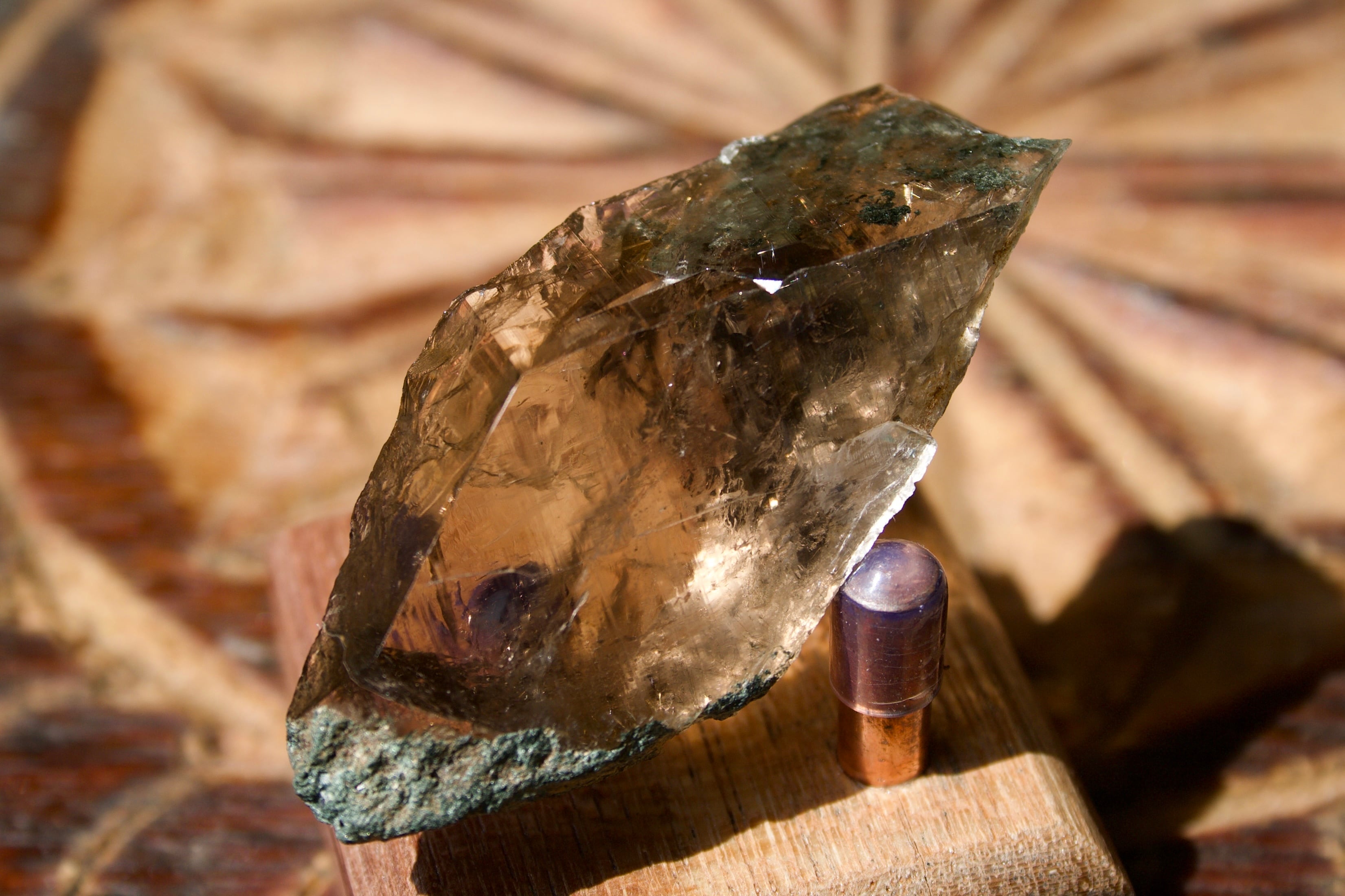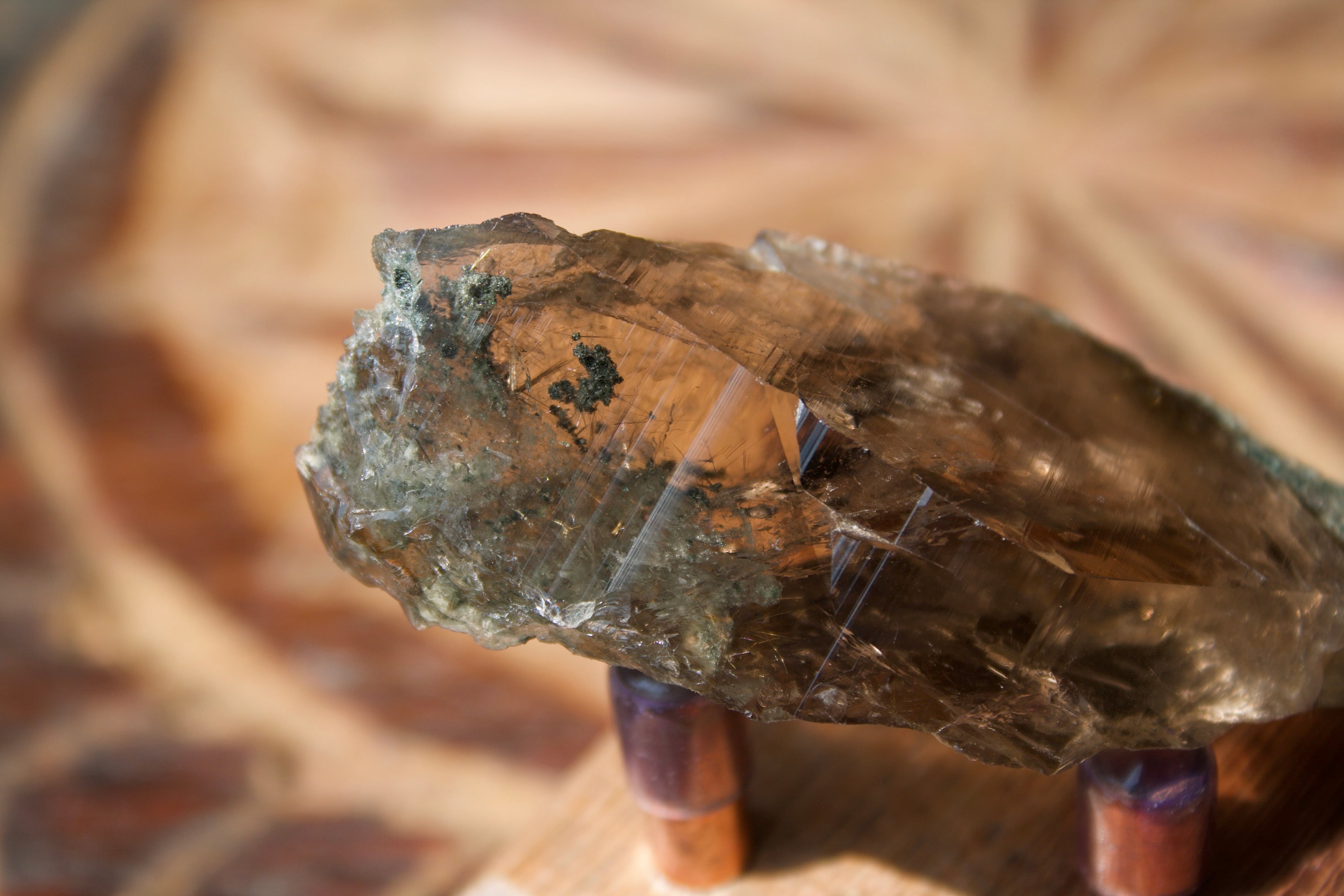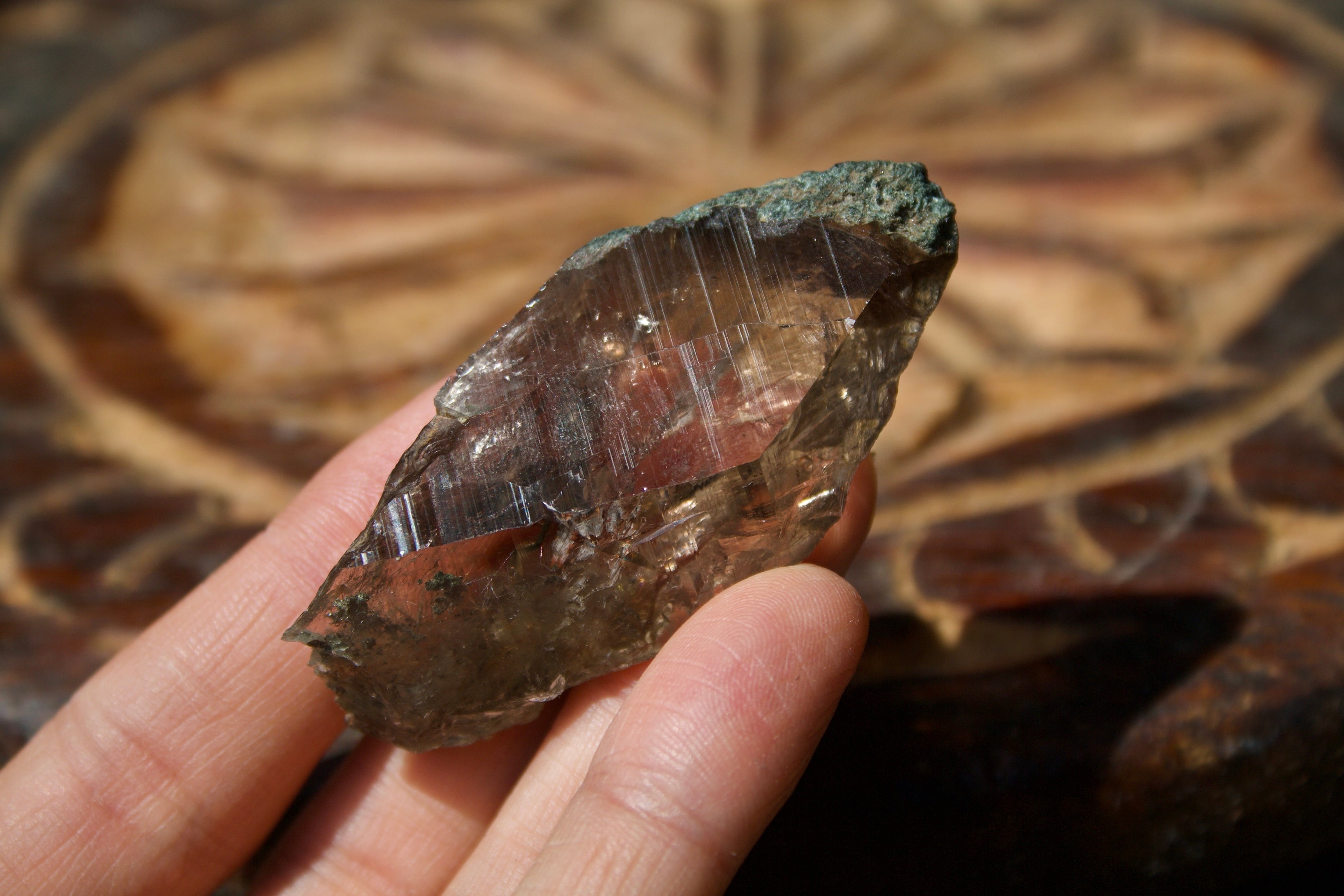 少量ですがルチルも入っており、太陽光の元でゆっくりと水晶を動かすと、チラチラと繊細なルチルが姿を現します。