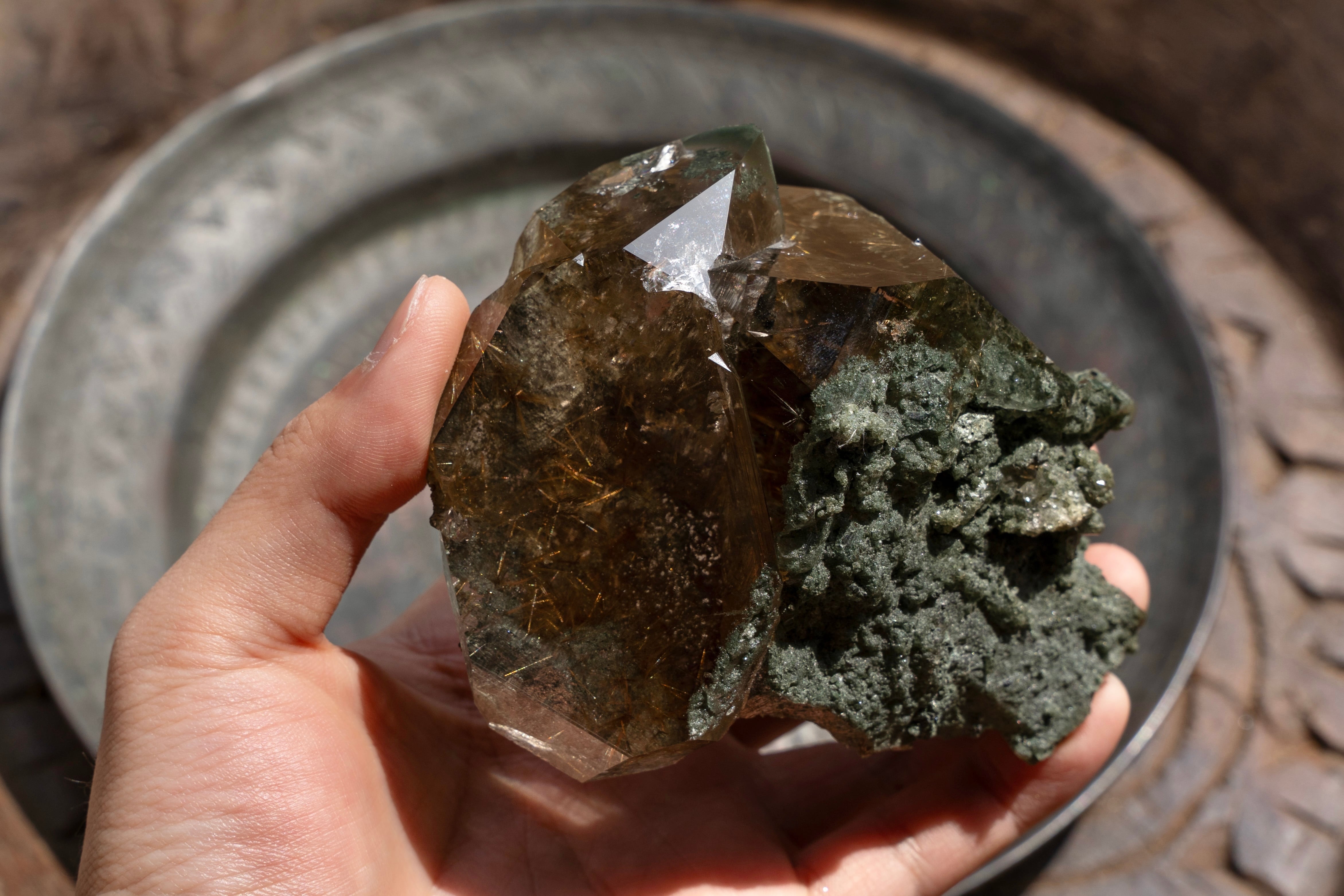 マニハール産ヒマラヤ水晶クラスター[ルチル・DT・ライトスモーキー・クローライト]