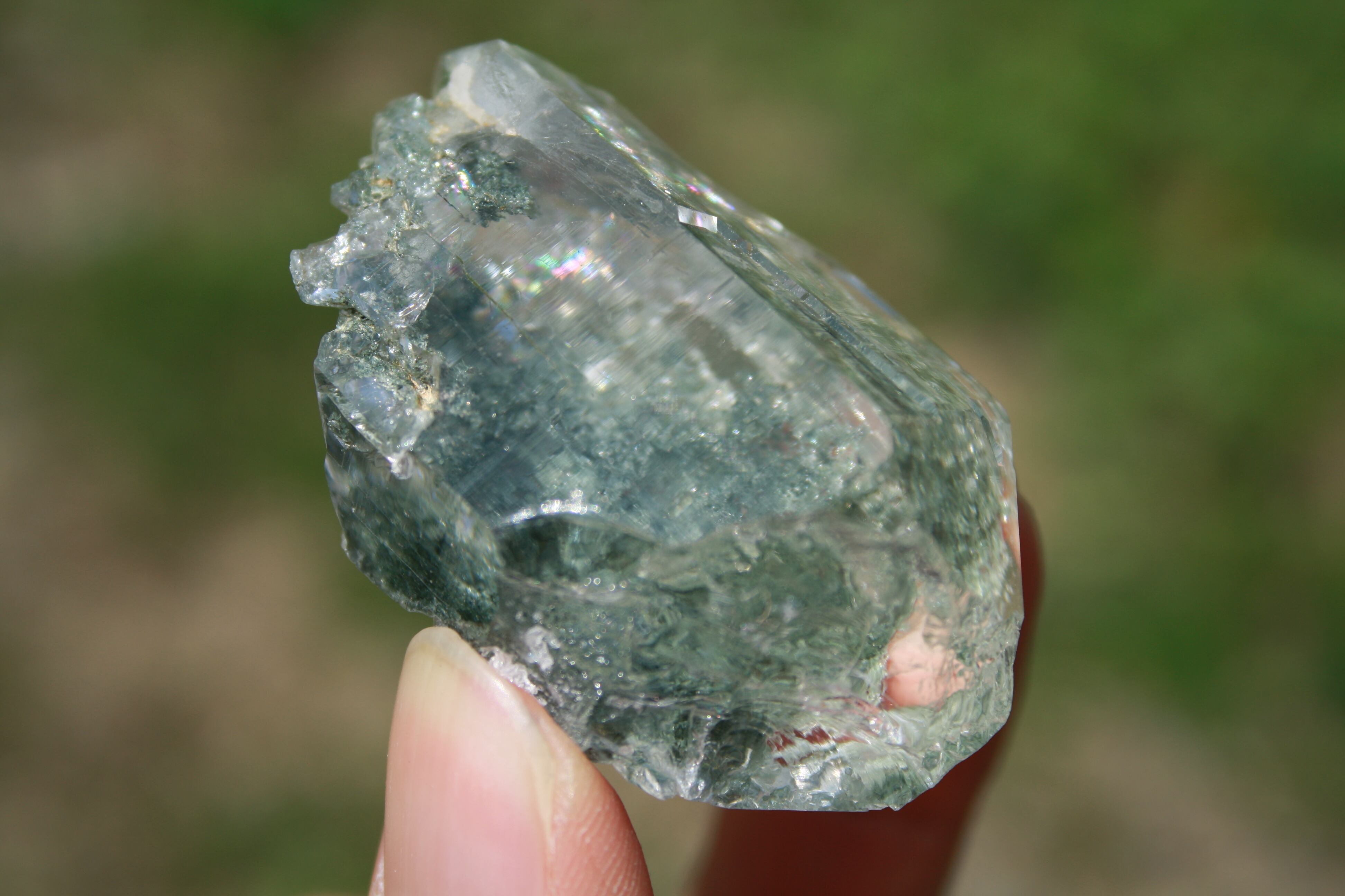 氷のような透明度を持っており、いくつかの部分にはアイリス(成長過程に出来た天然のクラック)があり、虹も見られます。